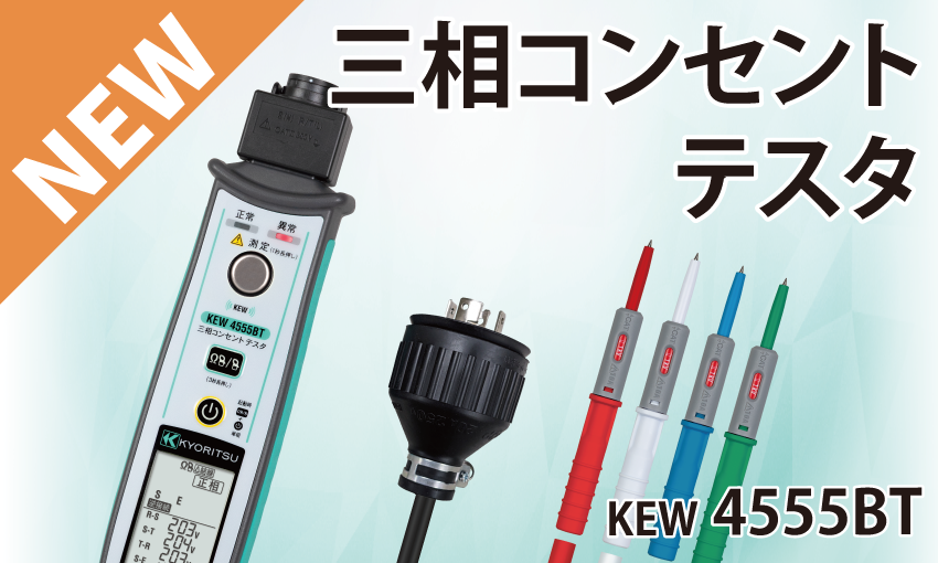 【新製品紹介:本日発売】KEW 4555BT:三相コンセントの電圧・検相・配線チェックがボタン1つで判定可能!
